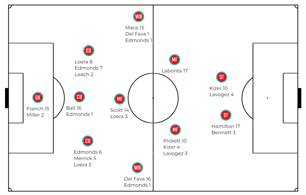 Below is an overview of the 3-5-2, and the number of starts made by players in each position since changing to this system.