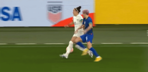 Dominating possession or not, the end goal is generally the same: creating and exploiting space in the opponent’s structure. Historically, the USWNT has been more a defend-and-counter team, one that can control the game through defence and generate opportunities in transition, coming from the opponent’s build-up. In 1991, the U.S. won the inaugural World Cup on the back of their pressing and counter-attacking. They tore a possession-based Germany side to shreds in the semi-final.