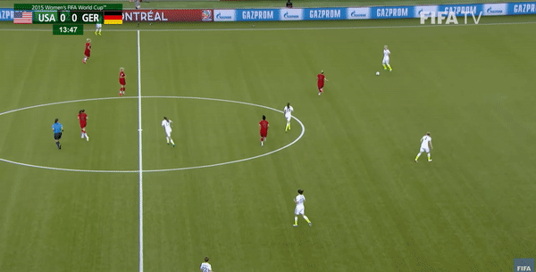 The USWNT incorporates combination play, and has done for some time. In the 2015 FIFA World Cup, Jill Ellis set her team up in a 4-4-2 which saw the wingers—particularly Tobin Heath—free to drift inside and play beneath the strikers, receiving lay-offs from Carli Lloyd.