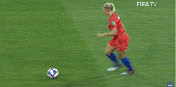 The USWNT has benefited from a non-stop conveyor belt of 1-v-1 specialists, from Carin ‘Crazy Legs’ Jennings in the early 1990s, through Tobin Heath and Megan Rapinoe, right up to the present day up-and-comers: Pugh, Lavelle, Smith, Rodman. Historically, the U.S. tended to get these players into good attacking situations through its defence and pressing. As opposed to a systematised possession game, they would adopt a systematised defensive game, designed to win the ball and break out before the opponent could reorganise.