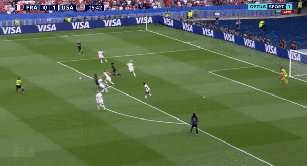 With Matuidi working hard to protect the left-back, close space and work alongside N’Golo Kante and Paul Pogba in midfield, Mbappe could gamble on his defensive position, staying higher to attack space in transition. By having one wide player take on more defensive responsibility, the other could be freed up on the counter. Andonovski would just need to find someone for the defensive job—a 2015 Kelley O’Hara type. Kristie Mewis and Crystal Dunn are players who tick the boxes: quick, technical and hard-working, with experience playing more box-to-box midfield roles.