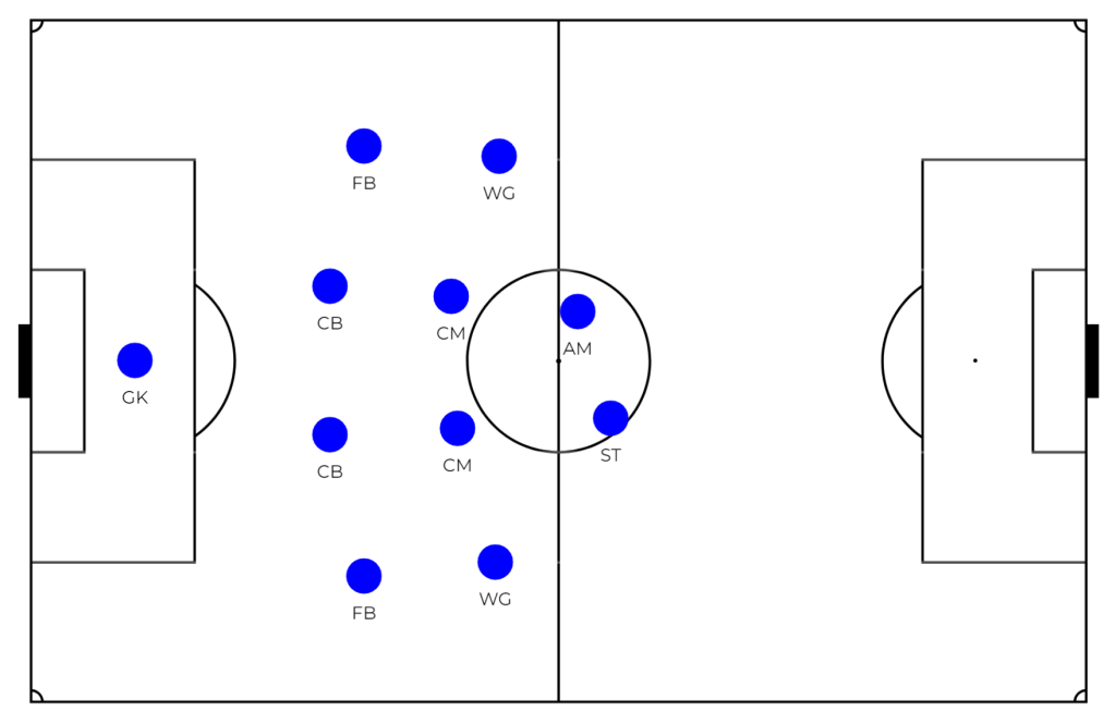 2019 saw a shift away from the 4-4-2. Ellis—taking inspiration from Jurgen Klopp’s Liverpool team—implemented a 4-3-3 with a narrow front three, in which: