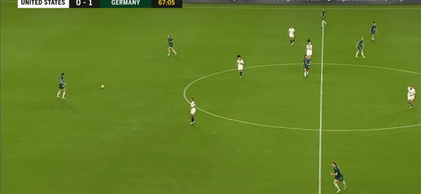 Andi Sullivan imposed herself upon the German midfield in the most recent of the two-game friendly series. She brings strength and aggression to 1-v-1 duels, but has yet to demonstrate the nose for danger and mobility of Ertz. Lindsey Horan has been trialled at the base of midfield, but is much more commanding when applying front-foot pressure than when opponents are running at her or past her; she is highly durable, but lacks speed off the mark and the anticipation to make up for that with proactive defensive positioning. More recently, Sam Coffey has been brought into the fold, albeit with limited minutes to show her true capability. Still, she is more creator than destroyer.