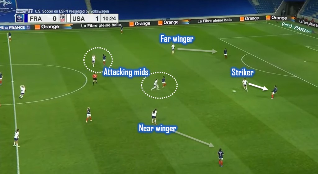 - The striker would now split the opponent’s centre-backs, steering them to one side of the field (something Carli Lloyd did a fantastic job of)