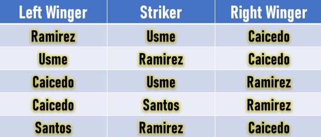 Usme and Santos up front: Two false nines