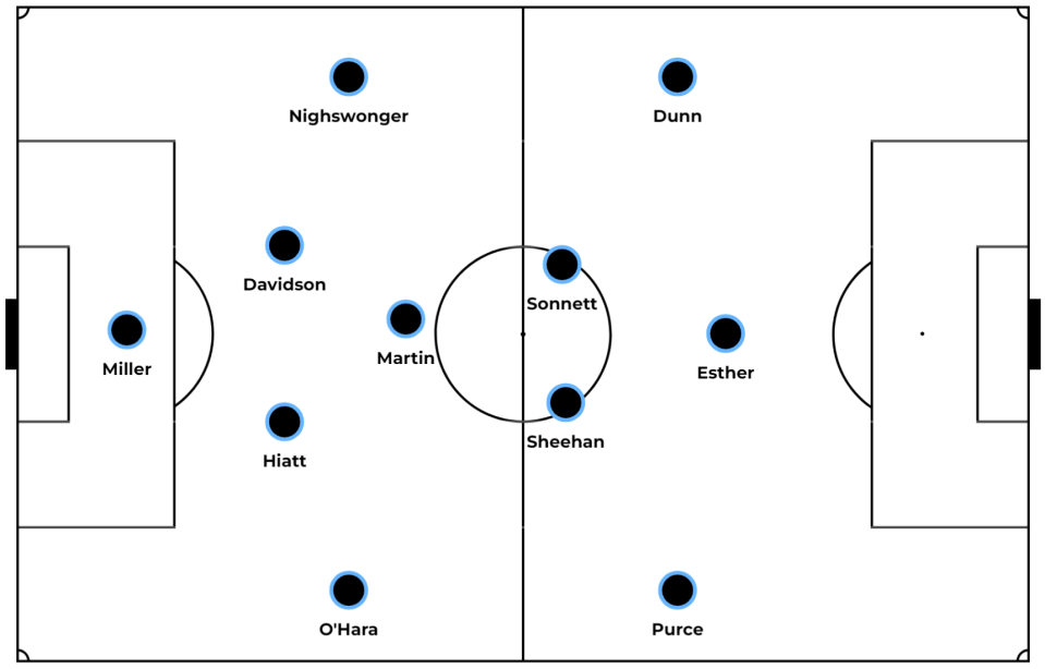 If you are looking to nullify the opposition’s strengths, then playing Sonnett as an attack dog just behind the striker, applying non-stop pressure to reduce the influence of high-calibre deep playmakers like Sam Coffey, has some obvious benefits. Sonnett isn’t just an energetic role-player, though. She reads situations well, anticipating where the ball could go next.